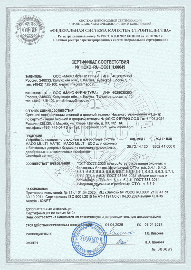 Сертификаты соответствия